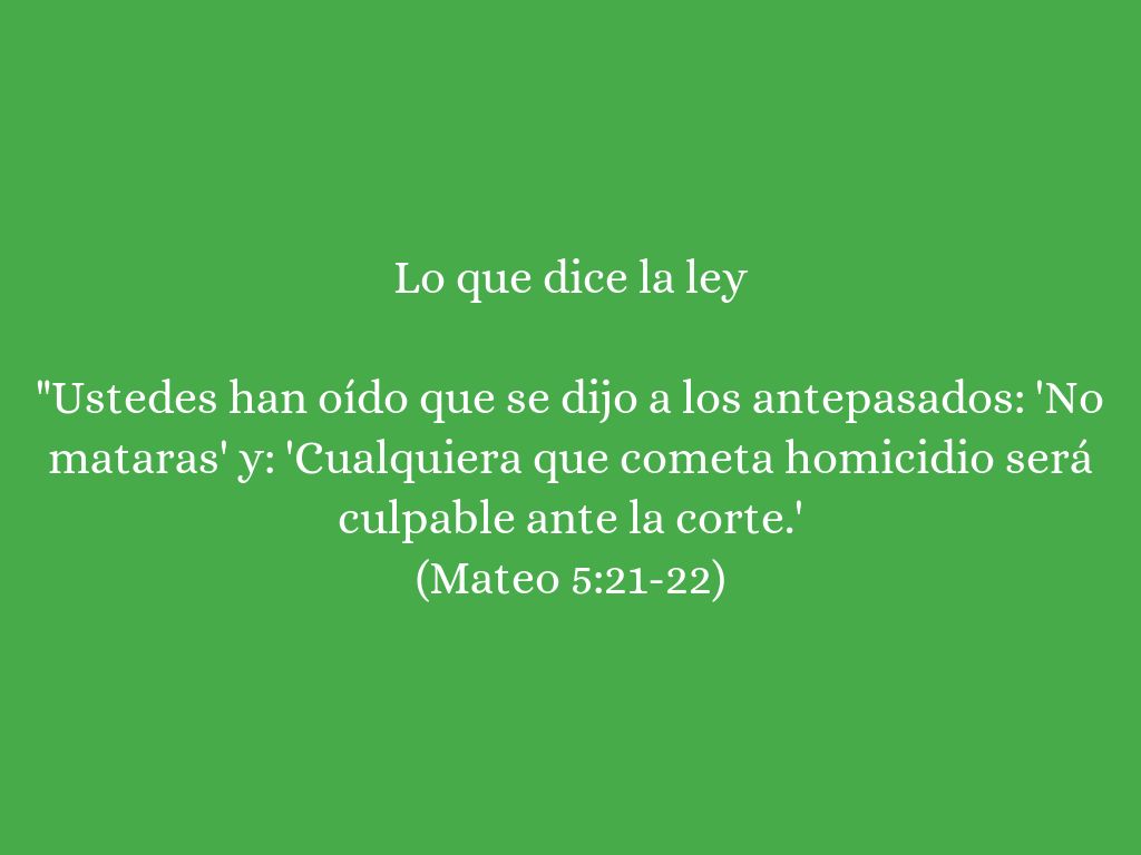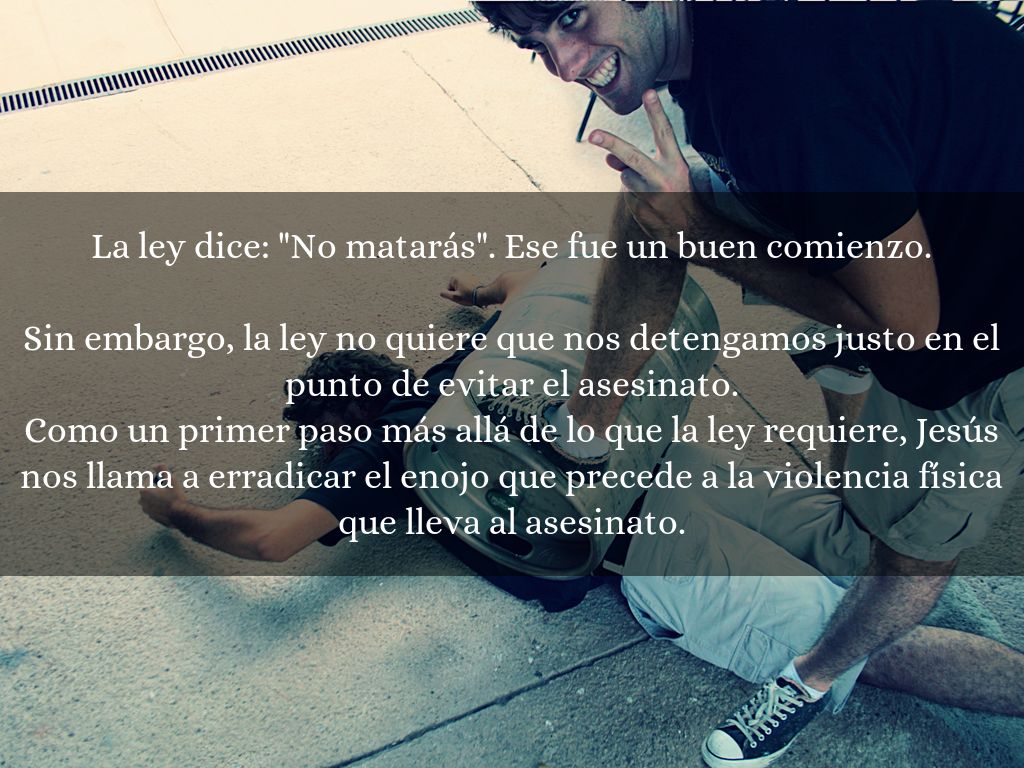 Como un primer paso más allá de lo que la ley requiere, Jesús nos llama a erradicar el enojo que precede a la violencia física que lleva al asesinato.