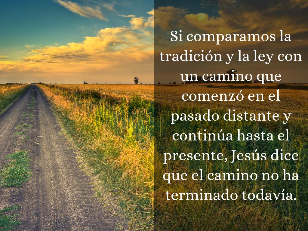 Si comparamos la tradición y la ley con un camino que comenzó en el pasado distante y continúa hasta el presente, Jesús dice que el camino no ha terminado todavía.