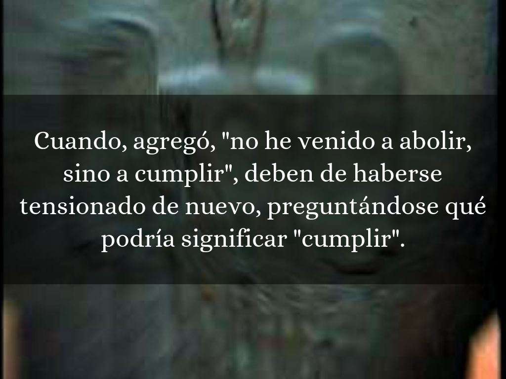 Cuando, agregó, "no he venido a abolir, sino a cumplir", deben de haberse tensionado de nuevo, preguntándose qué podría significar "cumplir".