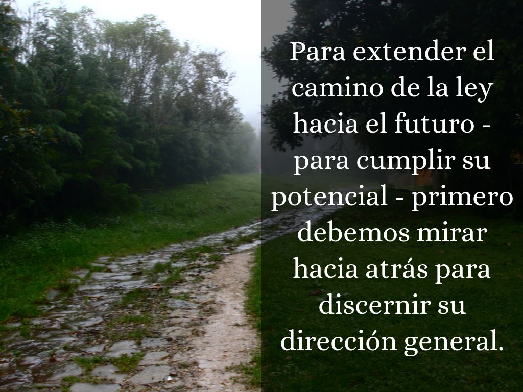 Para extender el camino de la ley hacia el futuro - para cumplir su potencial - primero debemos mirar hacia atrás para discernir su dirección general.
