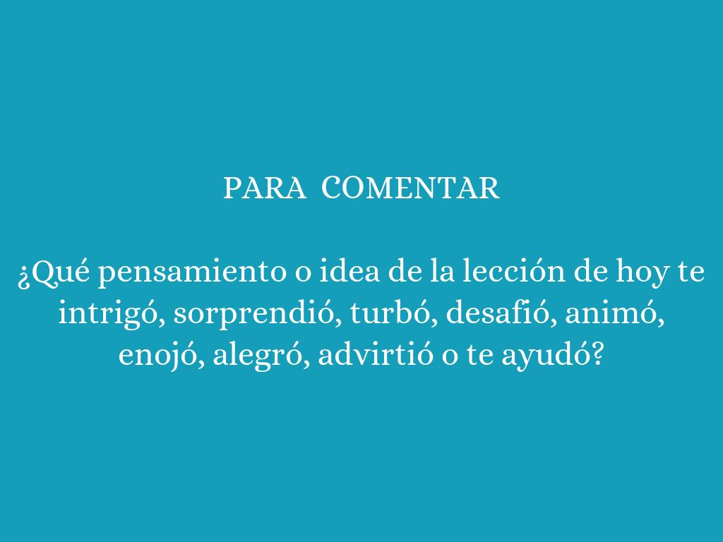 ¿Qué pensamiento o idea de la lección de hoy te intrigó, sorprendió, turbó, desafió, animó, enojó, alegró, advirtió o te ayudó?