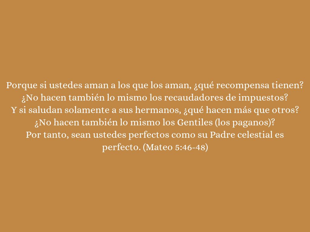 Por tanto, sean ustedes perfectos como su Padre celestial es perfecto. (Mateo 5:46-48)