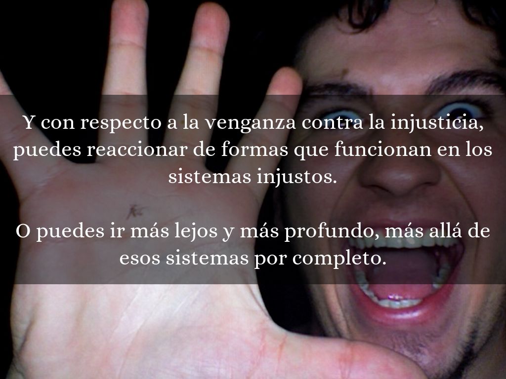 Y con respecto a la venganza contra la injusticia, puedes reaccionar de formas que funcionan en los sistemas injustos.