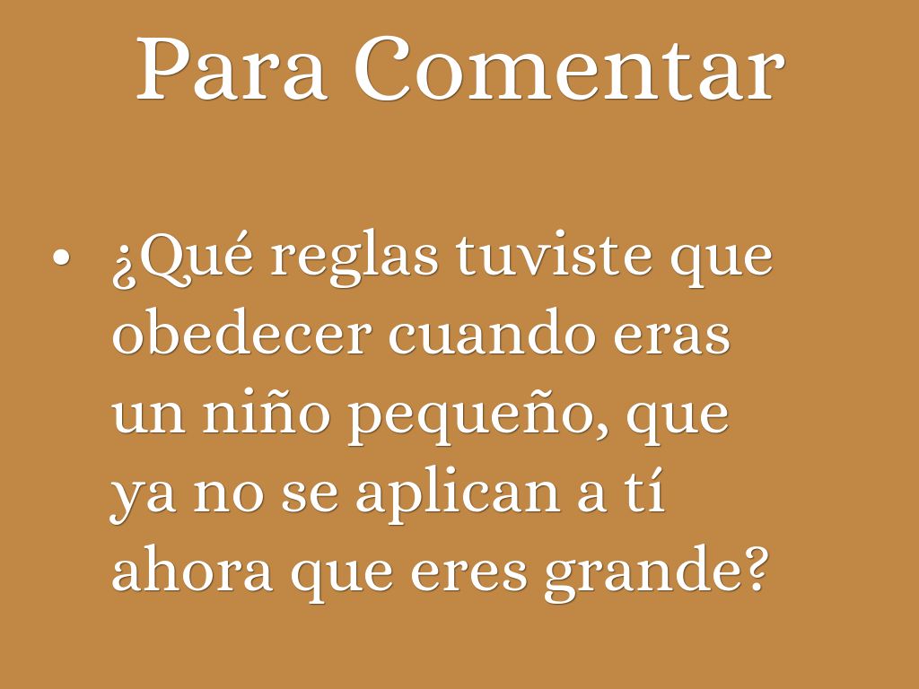 - ¿Qué reglas tuviste que obedecer cuando eras un niño pequeño, que ya no se aplican a tí ahora que eres grande?