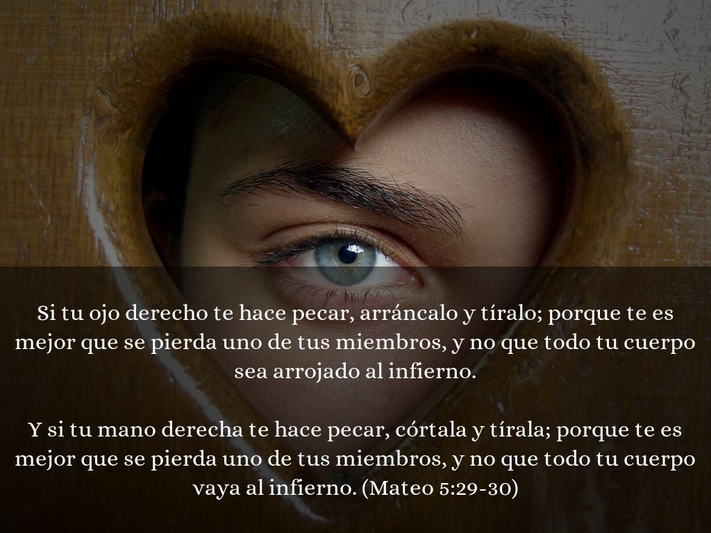 Si tu ojo derecho te hace pecar, arráncalo y tíralo; porque te es mejor que se pierda uno de tus miembros, y no que todo tu cuerpo sea arrojado al infierno.