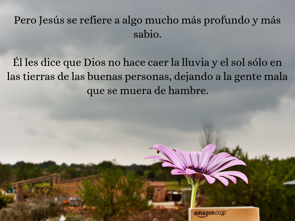 Él les dice que Dios no hace caer la lluvia y el sol sólo en las tierras de las buenas personas, dejando a la gente mala que se muera de hambre.