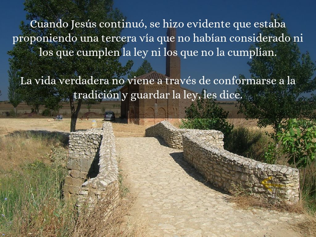 Cuando Jesús continuó, se hizo evidente que estaba proponiendo una tercera vía que no habían considerado ni los que cumplen la ley ni los que no la cumplían.