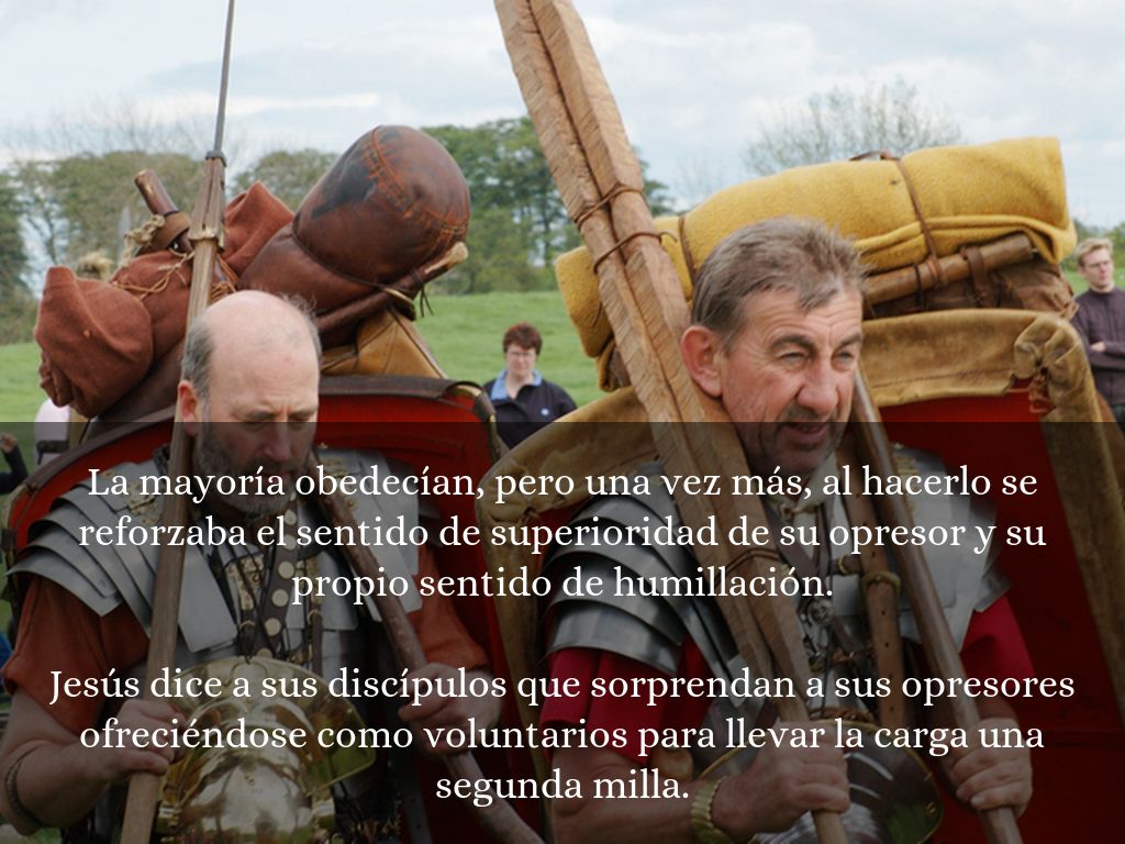 Jesús dice a sus discípulos que sorprendan a sus opresores ofreciéndose como voluntarios para llevar la carga una segunda milla.
