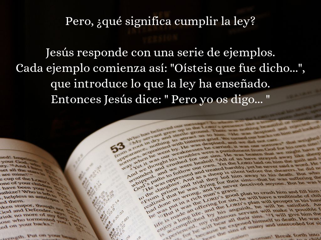 Cada ejemplo comienza así: "Oísteis que fue dicho...", que introduce lo que la ley ha enseñado.
