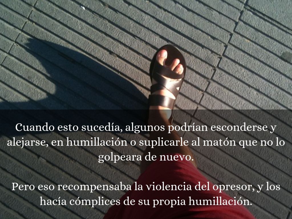 Pero eso recompensaba la violencia del opresor, y los hacía cómplices de su propia humillación.