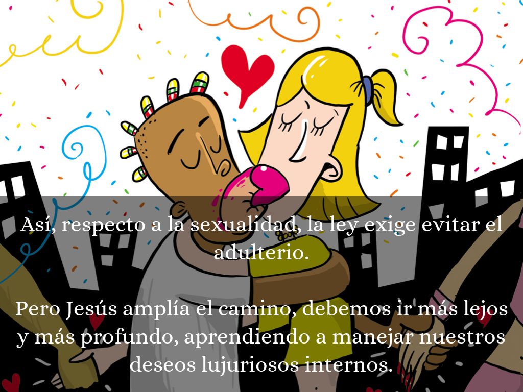 Pero Jesús amplía el camino, debemos ir más lejos y más profundo, aprendiendo a manejar nuestros deseos lujuriosos internos.