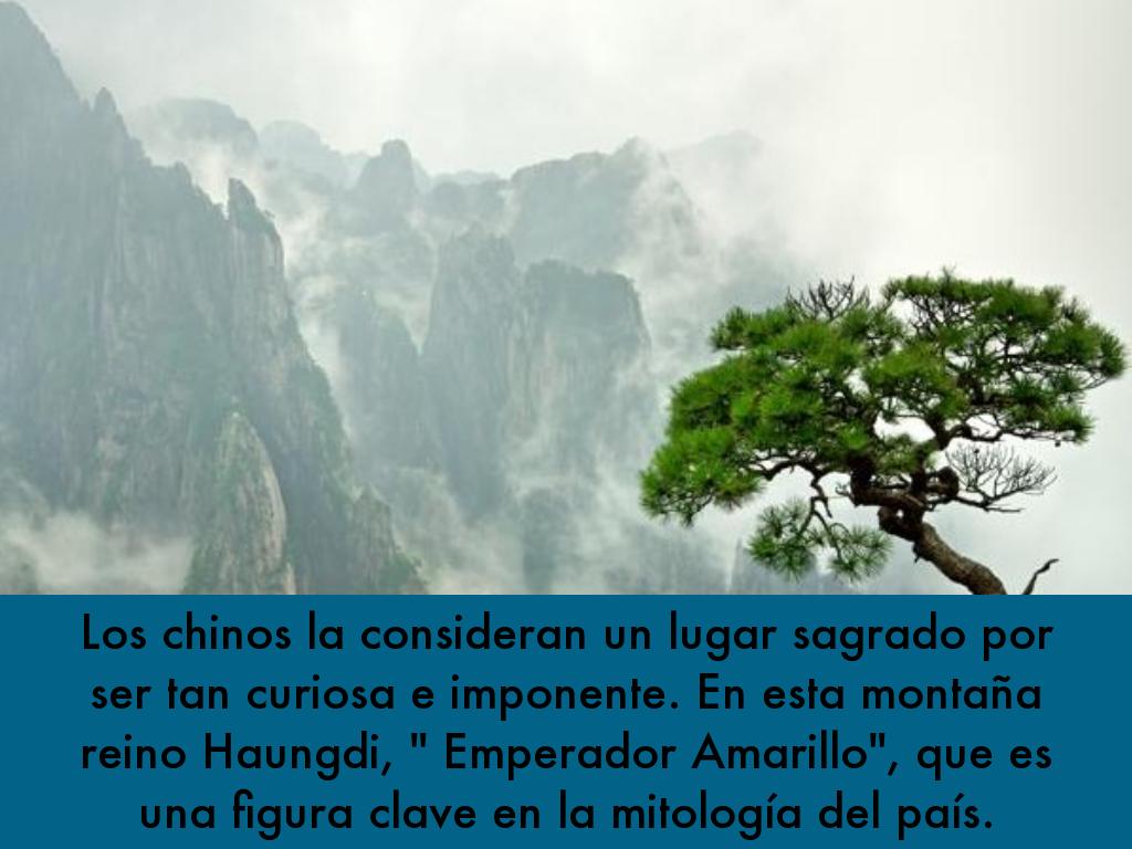 Los chinos la consideran un lugar sagrado por ser tan curiosa e imponente. En esta montaña reino Haungdi, " Emperador Amarillo", que es una figura clave en la mitología del país.