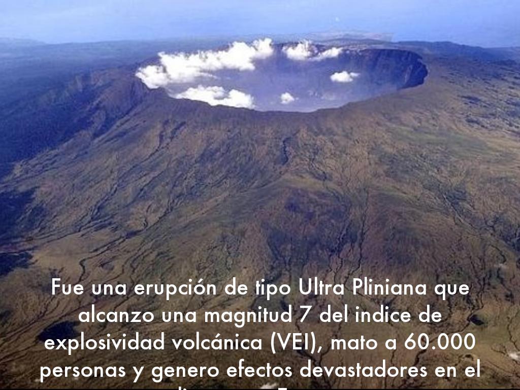 Fue una erupción de tipo Ultra Pliniana que alcanzo una magnitud 7 del indice de explosividad volcánica (VEI), mato a 60.000 personas y genero efectos devastadores en el clima para Europa.