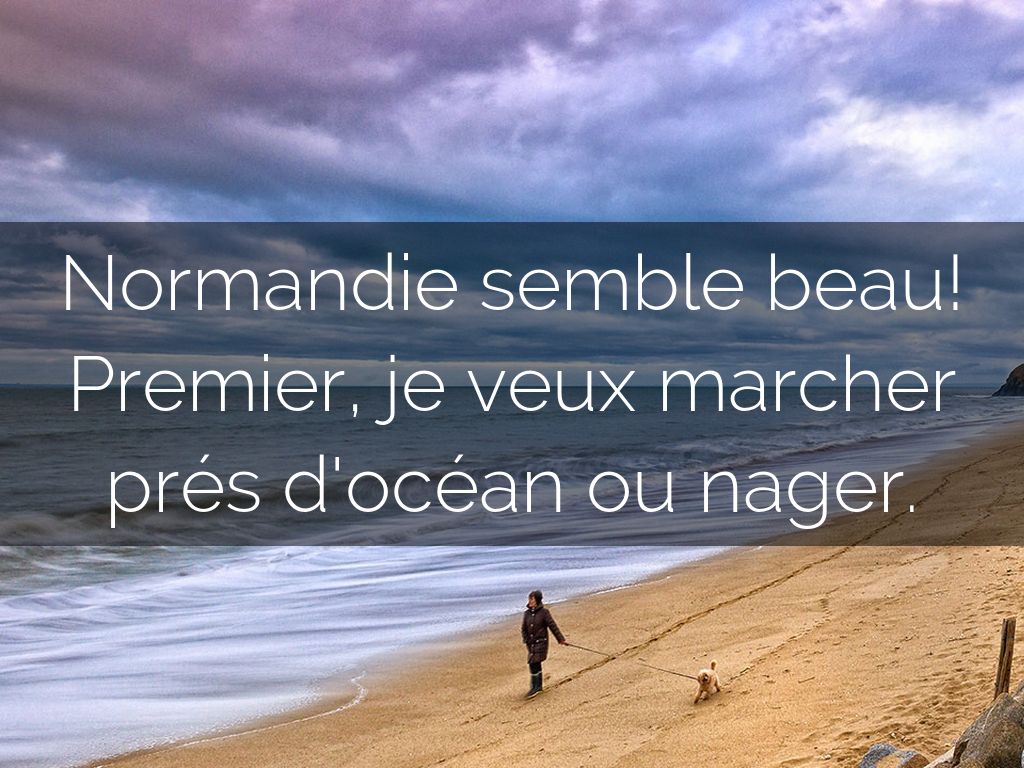 Normandie semble beau! Premier, je veux marcher prés d'océan ou nager.