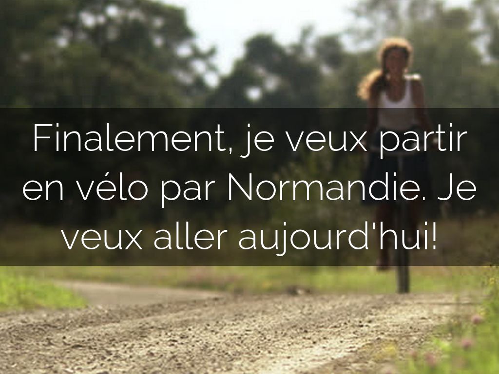 Finalement, je veux partir en vélo par Normandie. Je veux aller aujourd'hui!