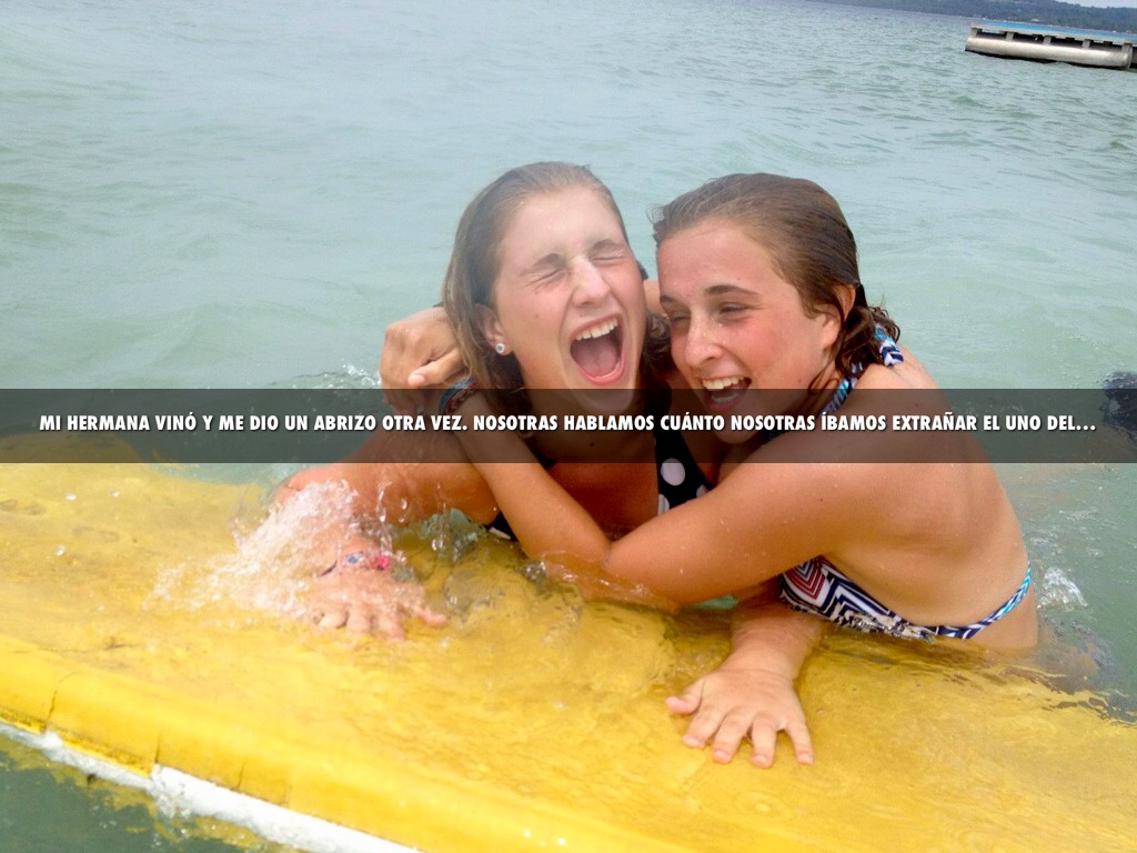 MI HERMANA VINÓ Y ME DIO UN ABRIZO OTRA VEZ. NOSOTRAS HABLAMOS CUÁNTO NOSOTRAS ÍBAMOS EXTRAÑAR EL UNO DEL OTRO.
