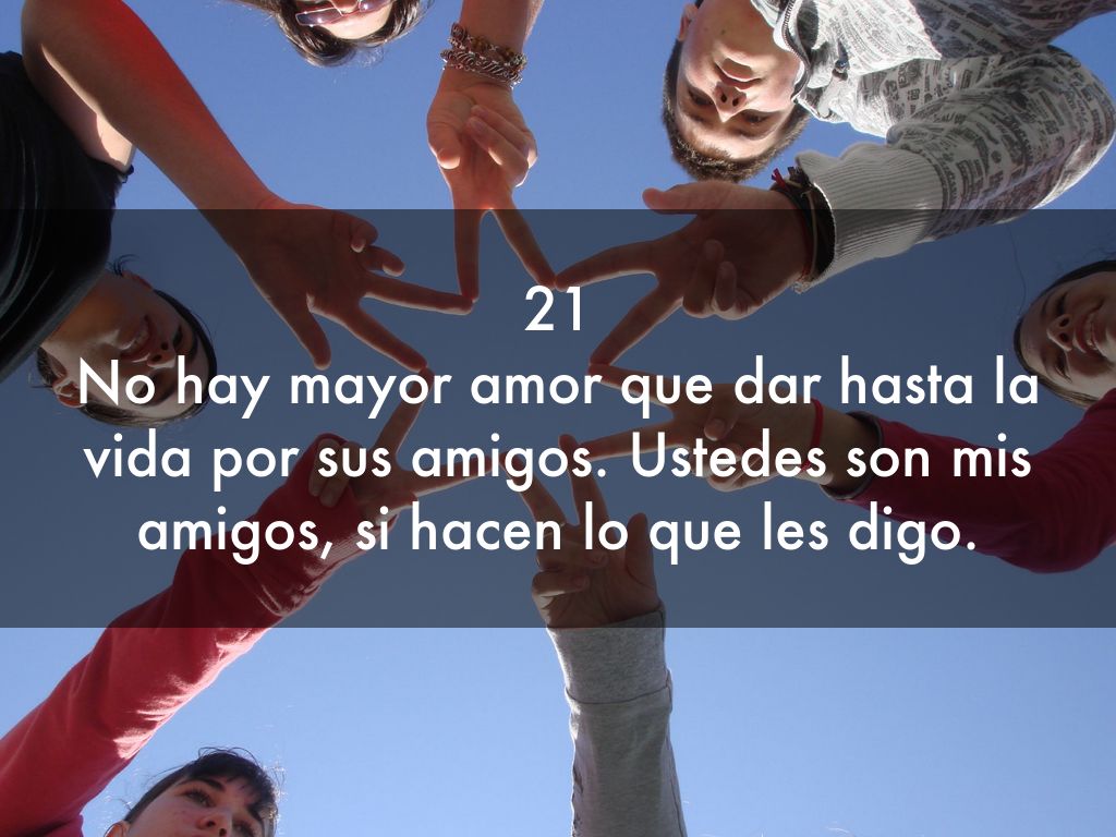 No hay mayor amor que dar hasta la vida por sus amigos. Ustedes son mis amigos, si hacen lo que les digo.