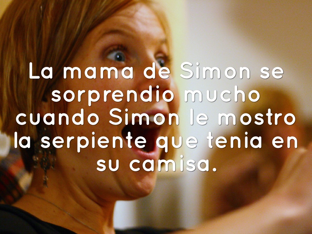La mama de Simon se sorprendio mucho cuando Simon le mostro la serpiente que tenia en su camisa.