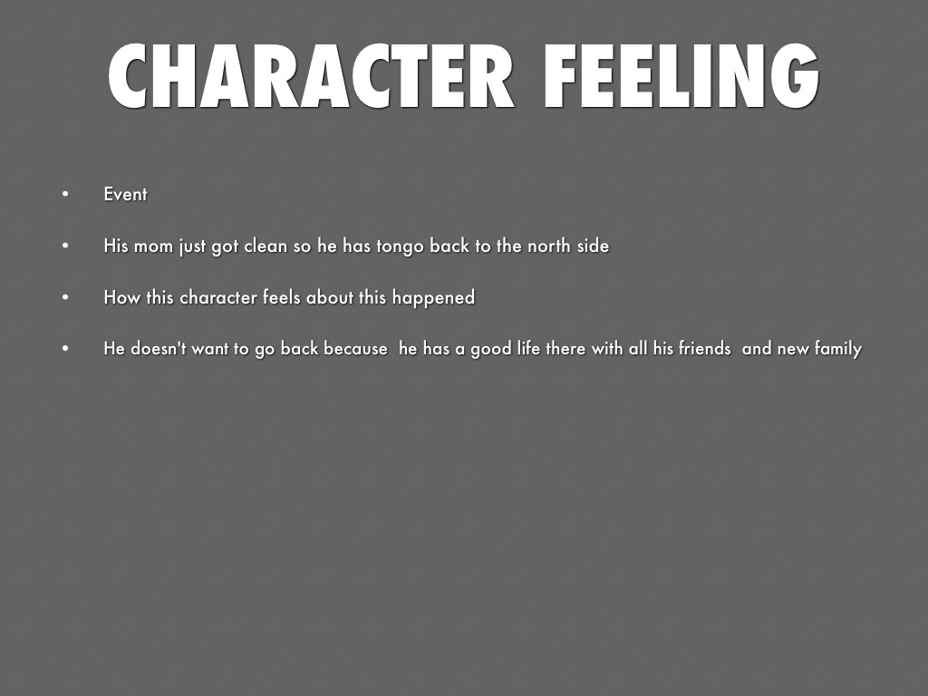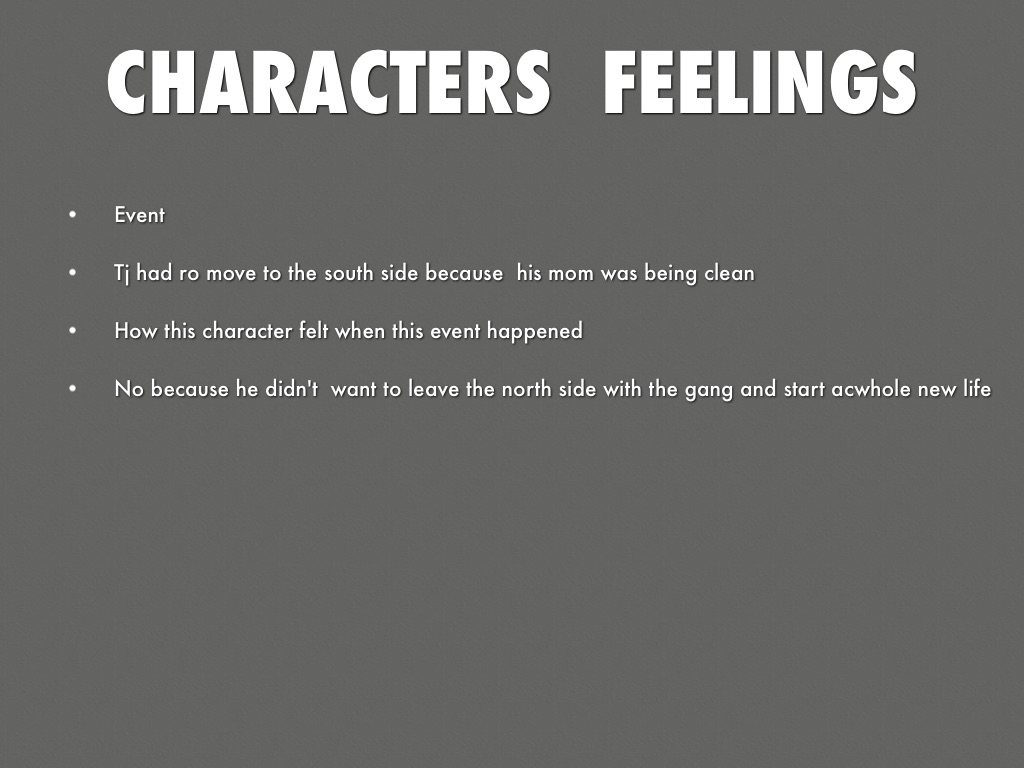 In the book all he wanted is to feel safe and be happy on the northside he dident with all the gangs and his family he felt bad