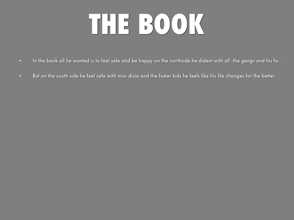 But on the south side he feel safe with miss dixie and the foster kids he feels like his life changes for the better