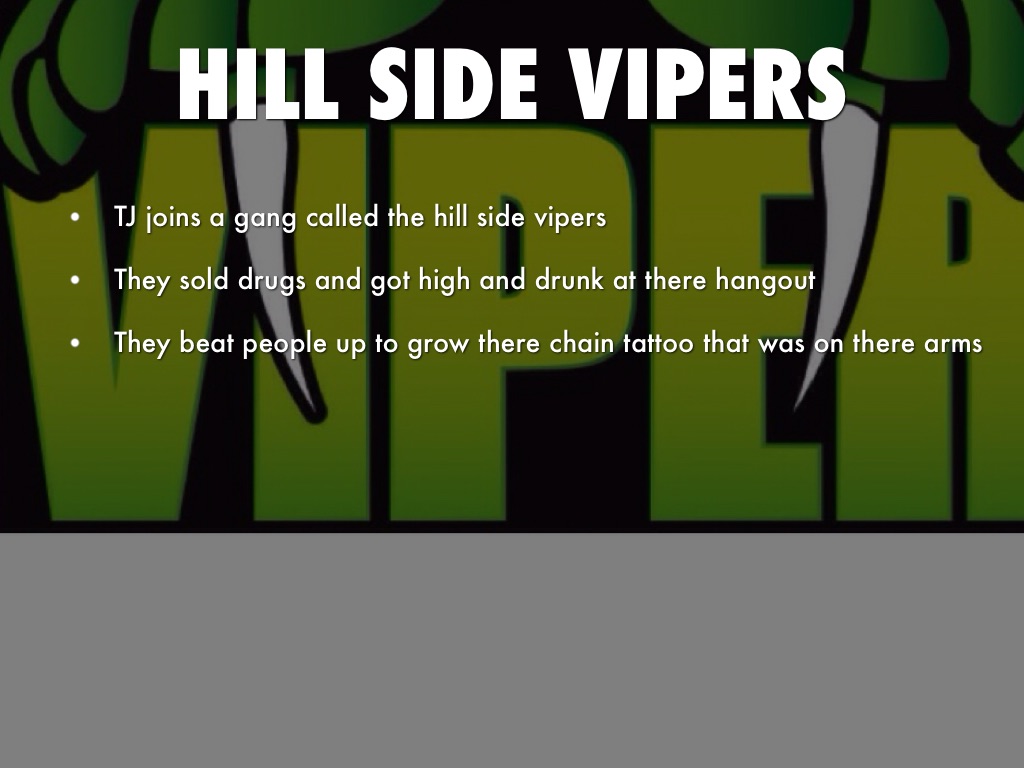 Is where TJ spent most of his life with his dad his mom and a gang called the hill side vipers