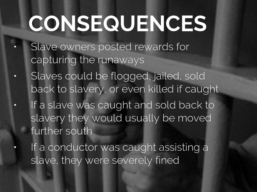 Slaves could be flogged, jailed, sold back to slavery, or even killed if caught