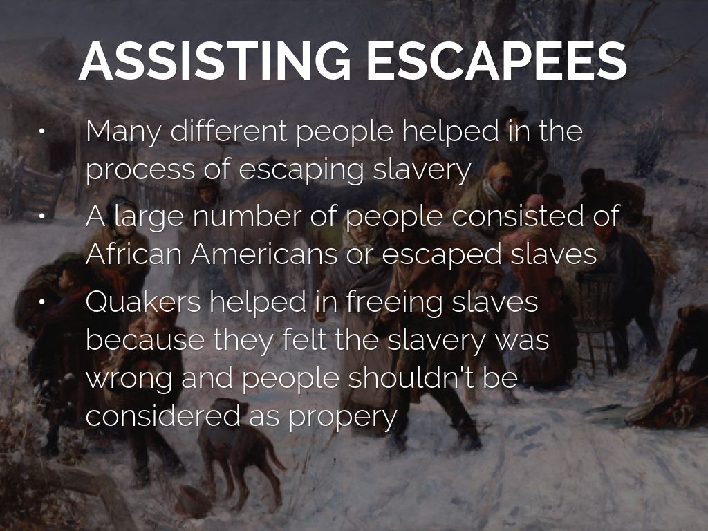 Quakers helped in freeing slaves because they felt the slavery was wrong and people shouldn't be considered as propery