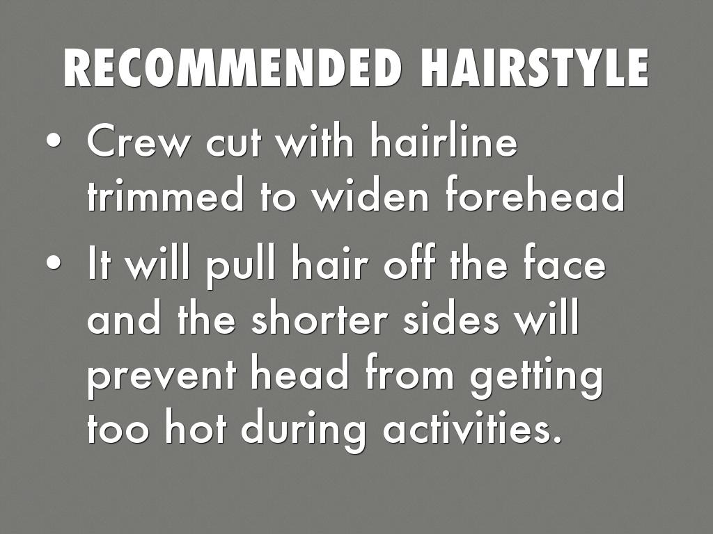 Crew cut with hairline trimmed to widen forehead