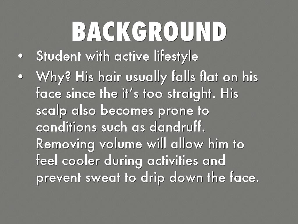 Why? His hair usually falls flat on his face since the it’s too straight. His scalp also becomes prone to conditions such as dandruff. Removing volume will allow him to feel cooler during activities and prevent sweat to drip down the face.