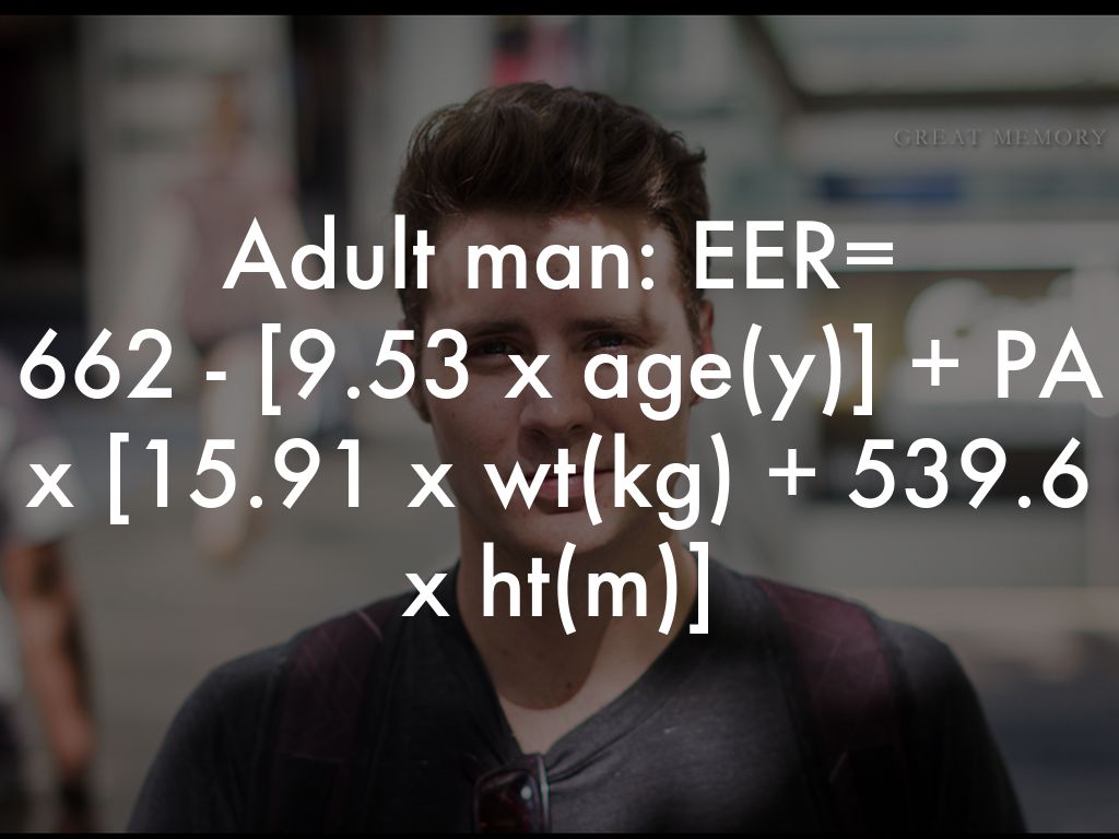 The EERs represent the average energy intakes needed to maintain weight in a healthy person of a particular age, sex, weight, height and activity level (McQuire et al., 2013)