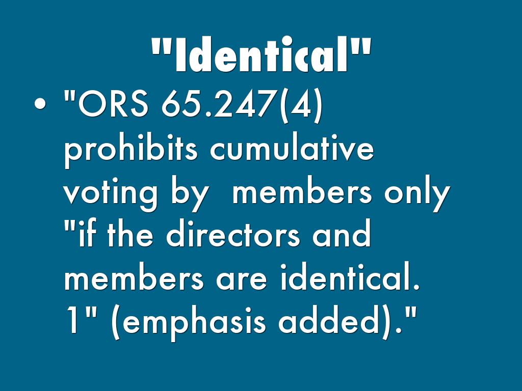 "ORS 65.247(4) prohibits cumulative voting by members only "if the directors and members are identical. 1" (emphasis added)."
