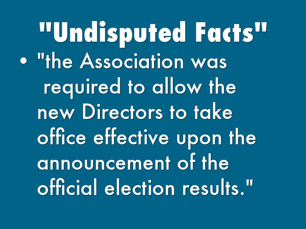 "the Association was required to allow the new Directors to take office effective upon the announcement of the official election results."