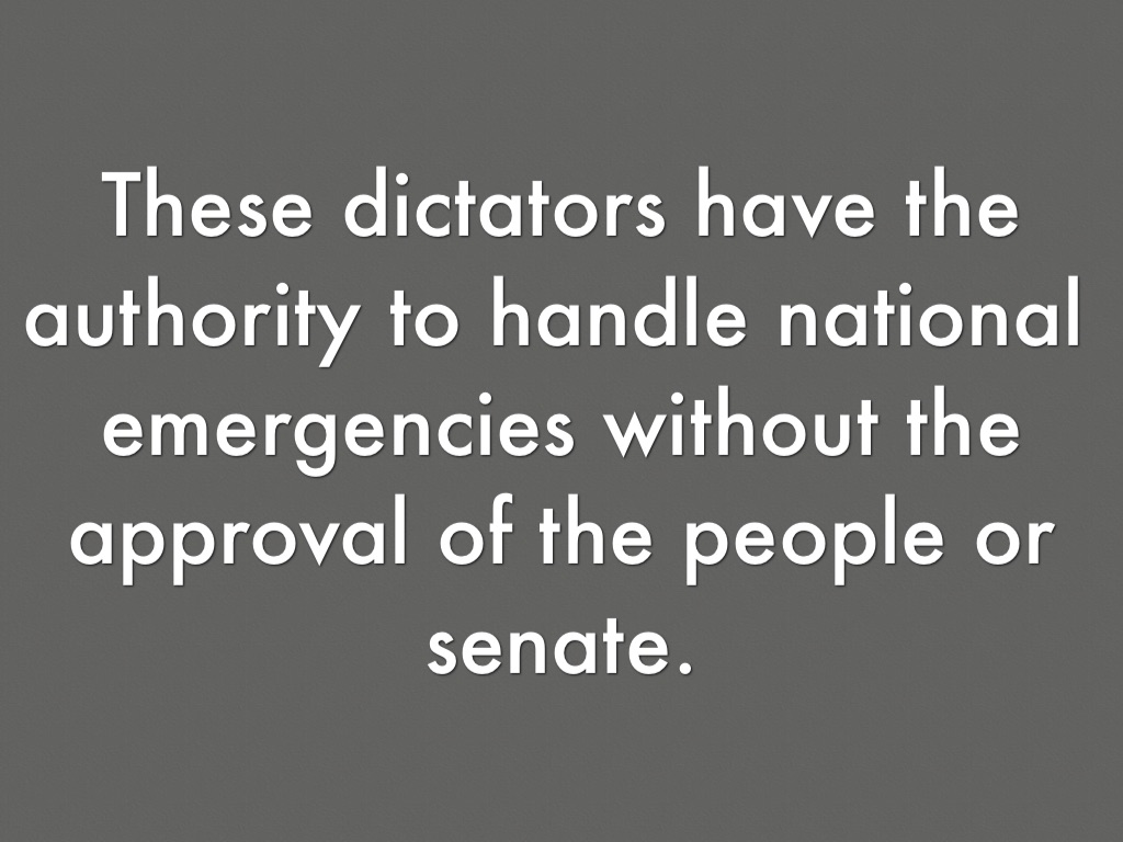 These dictators have the authority to handle national emergencies without the approval of the people or senate.