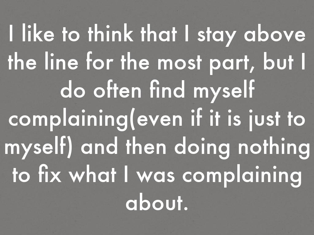 I like to think that I stay above the line for the most part, but I do often find myself complaining(even if it is just to myself) and then doing nothing to fix what I was complaining about.