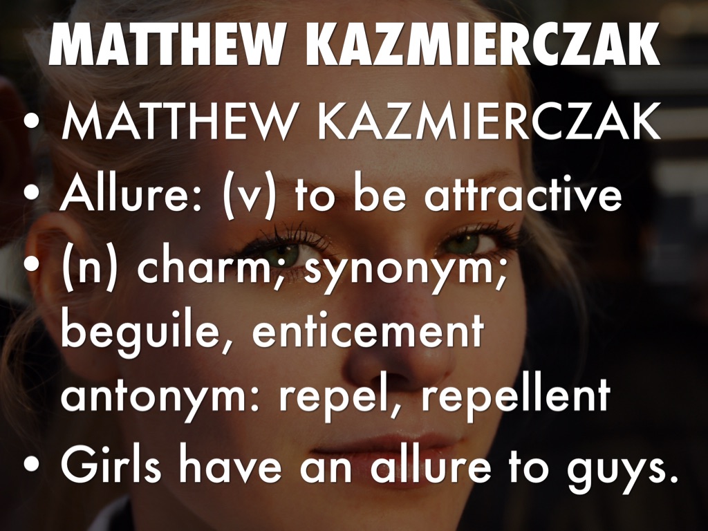 (n) charm; synonym; beguile, enticement antonym: repel, repellent