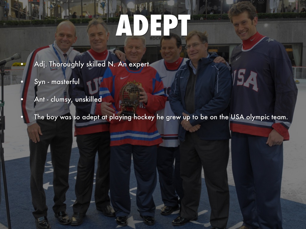 Adj. Thoroughly skilled N. An expert