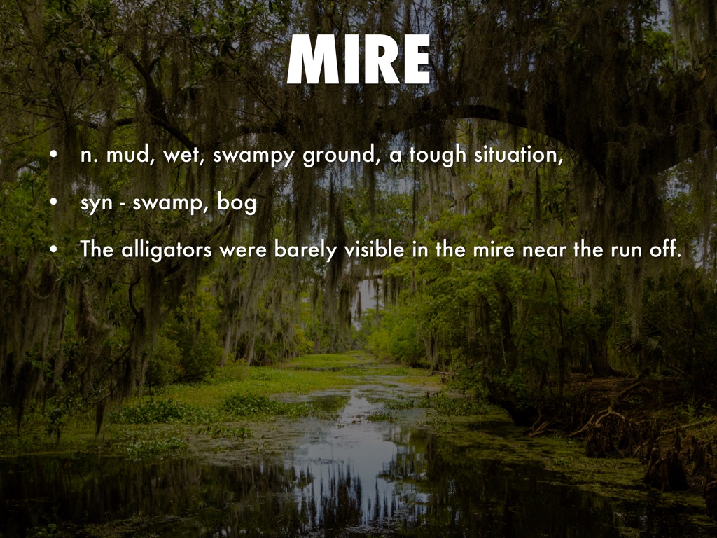 n. mud, wet, swampy ground, a tough situation,