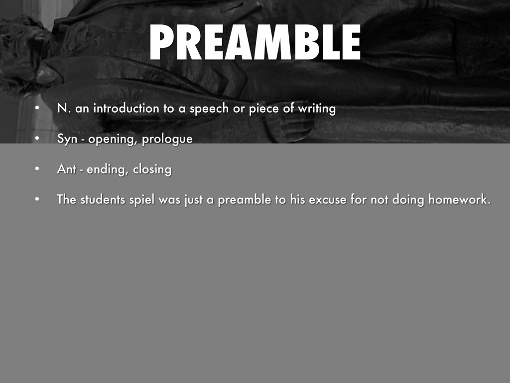 N. an introduction to a speech or piece of writing