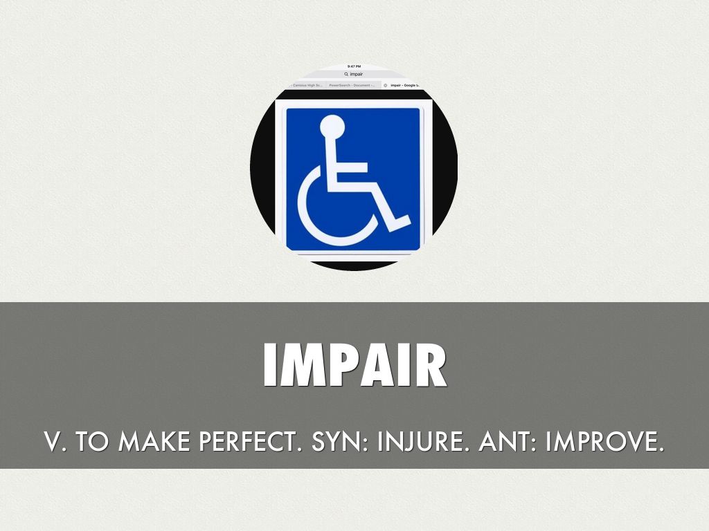 V. TO MAKE PERFECT. SYN: INJURE. ANT: IMPROVE.