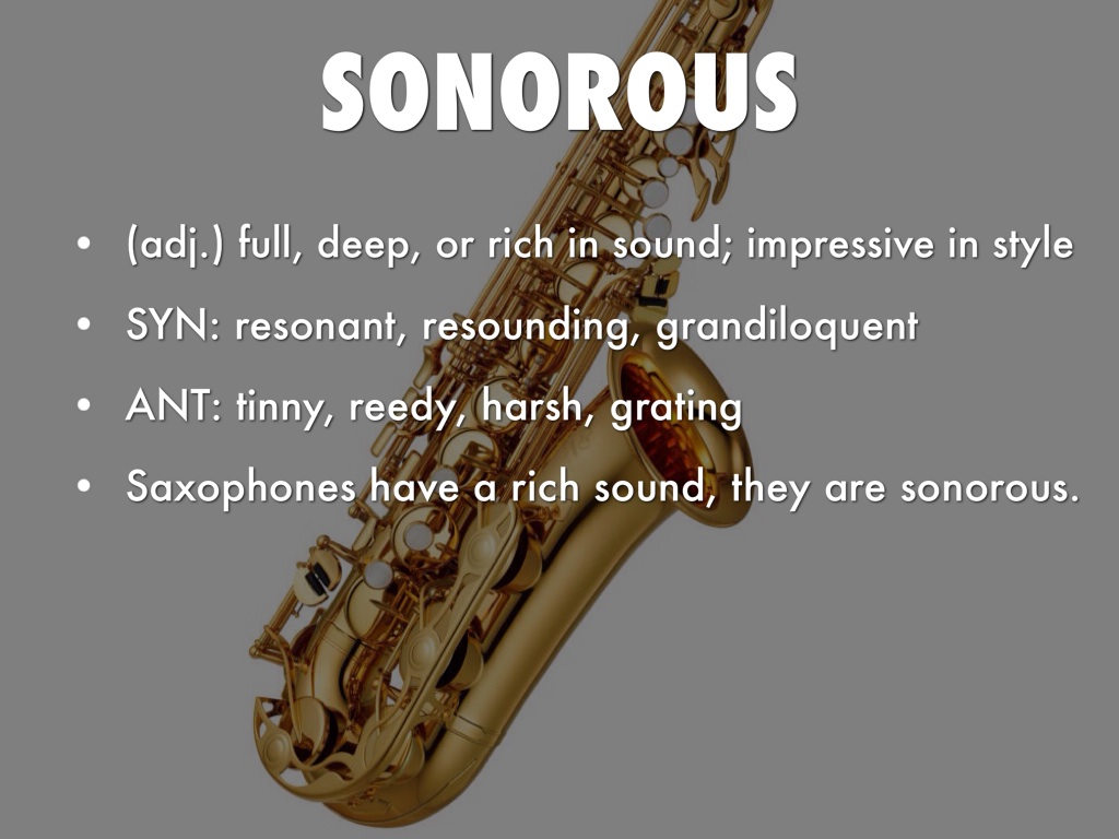 (adj.) full, deep, or rich in sound; impressive in style