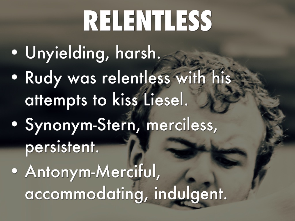 Synonym-Stern, merciless, persistent.