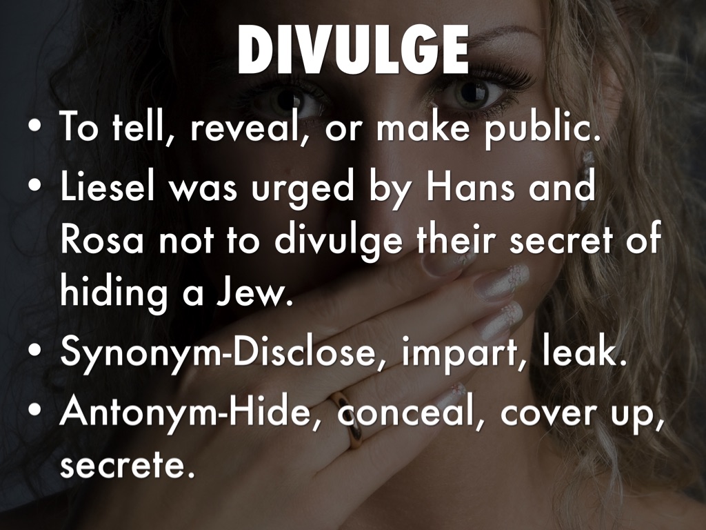 Synonym-Disclose, impart, leak.