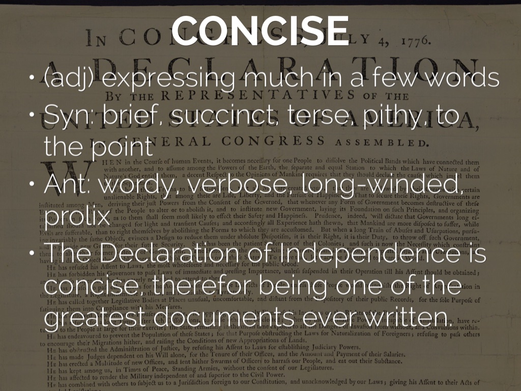 The Declaration of Independence is concise, therefor being one of the greatest documents ever written.