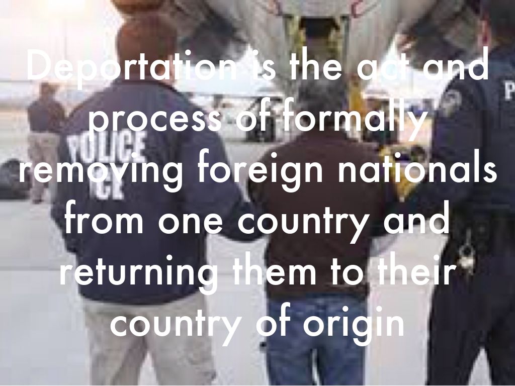 Deportation is the act and process of formally removing foreign nationals from one country and returning them to their country of origin