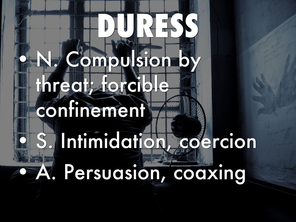 • N. Compulsion by threat; forcible confinement
