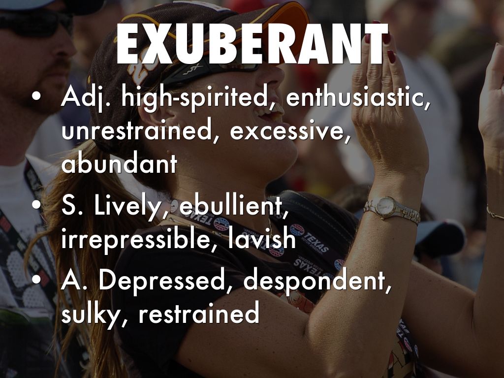 • Adj. high-spirited, enthusiastic, unrestrained, excessive, abundant