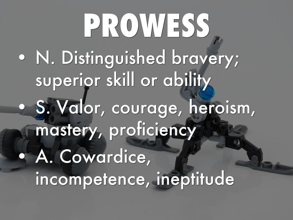 • S. Valor, courage, heroism, mastery, proficiency
