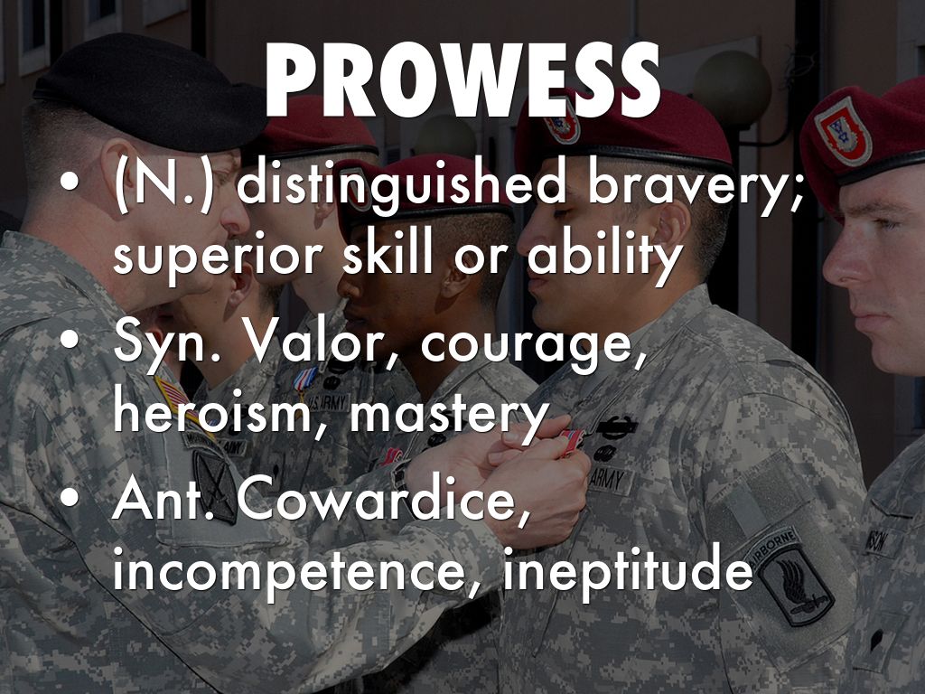 (N.) distinguished bravery; superior skill or ability
