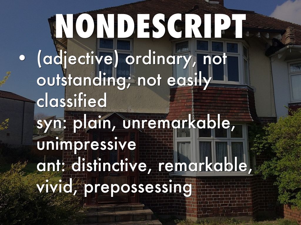 (adjective) ordinary, not outstanding; not easily classified syn: plain, unremarkable, unimpressive ant: distinctive, remarkable, vivid, prepossessing