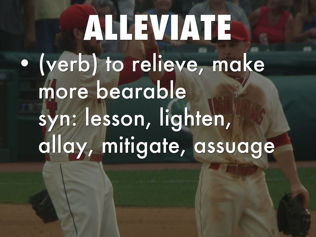 (verb) to relieve, make more bearable syn: lesson, lighten, allay, mitigate, assuage